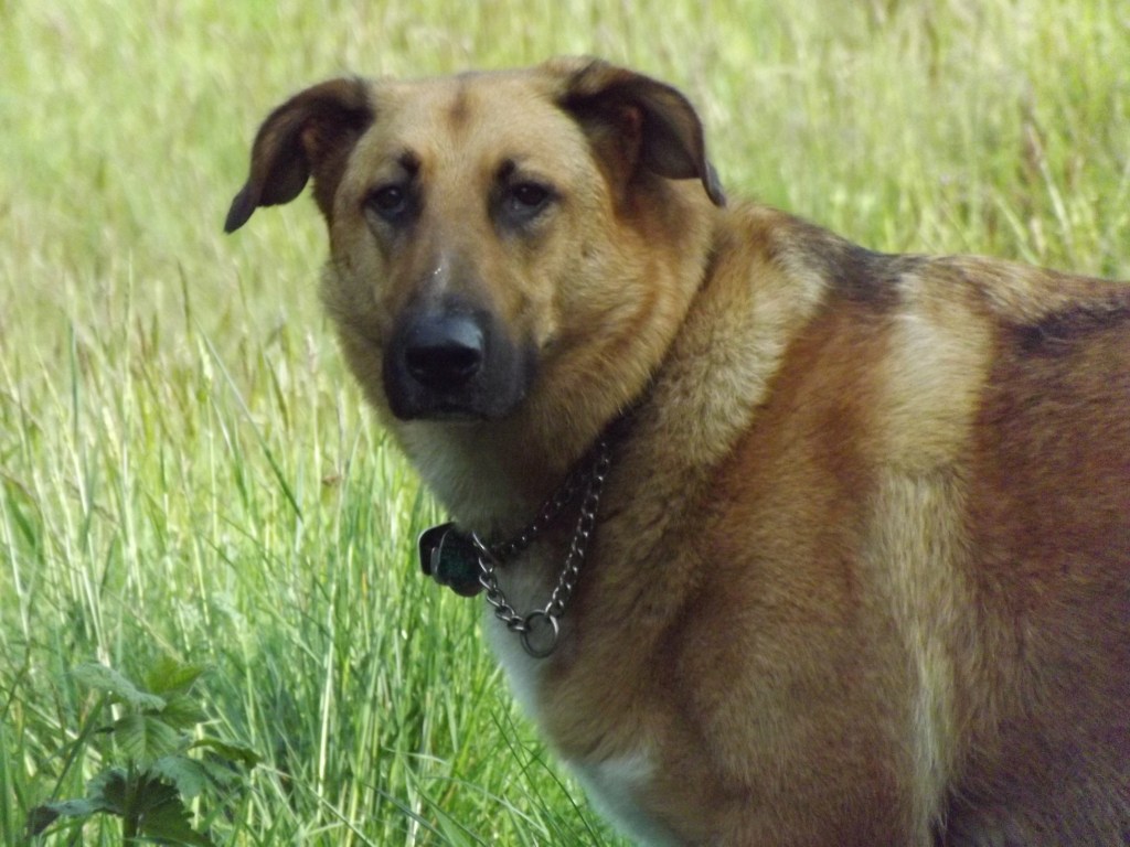 Ami, as usual, was padding along ahead of me smelling every shrub, peeing on every seventh rock, and occasionally he would stop dead in his tracks, staring out into the field at a big black stump that he couldn’t figure out, wasn’t sure what it was.  All sorts of doggie imaginations scurrying through his mind until I kept calmly walking saying, “Yeah, it does look sort of creepy, doesn’t it buddy, could be all sorts of things, but it’s just a stump,” and Ami would sort of shrug a furry shoulder, almost nod, and then start walking again quickly gaining point ahead of me to go back to sniffing and peeing.