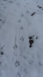 Ami stopped again this time staring at a frozen black pond.  He seemed both scared and curious.  He started to head to the pond, but when he put his first toe near the ice, I called him back just in case something horrible happened.  He shook his head, had a quick defiant pee, and we continued on our way, him on point, me trudging along, the sun starting to make the snow glisten on the path.  I listened to my boots crunching through the white crust.